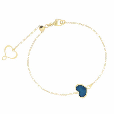 Bracciale con cuore Maman et Sophie centrale smaltato in blu realizzato in argento 925 con galvanica oro giallo ad alto spessore e resistenza.