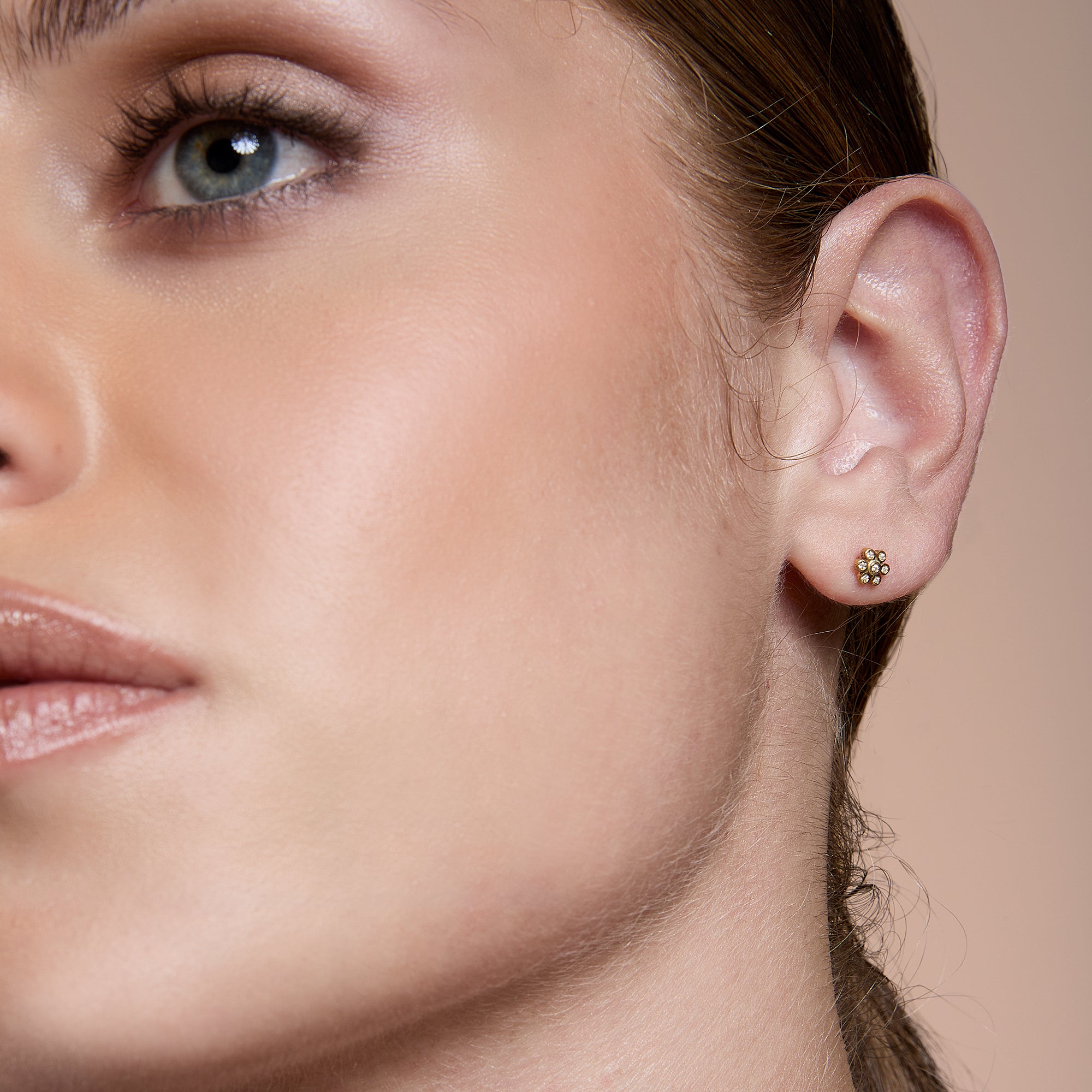 Paio di Orecchini in oro 9kt con fiore in diamanti naturali