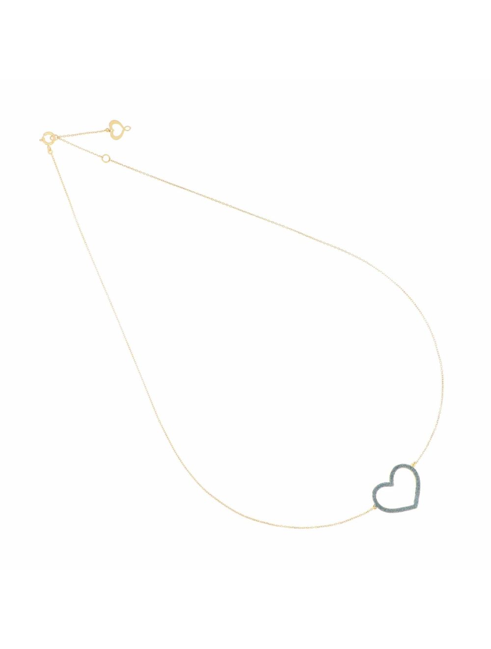 Girocollo con cuore centrale traforato in polvere di diamanti celeste realizzato in oro giallo 18 carati.