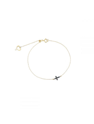 Bracciale in oro giallo 18 carati con croce centrale con pavé di diamanti neri.
