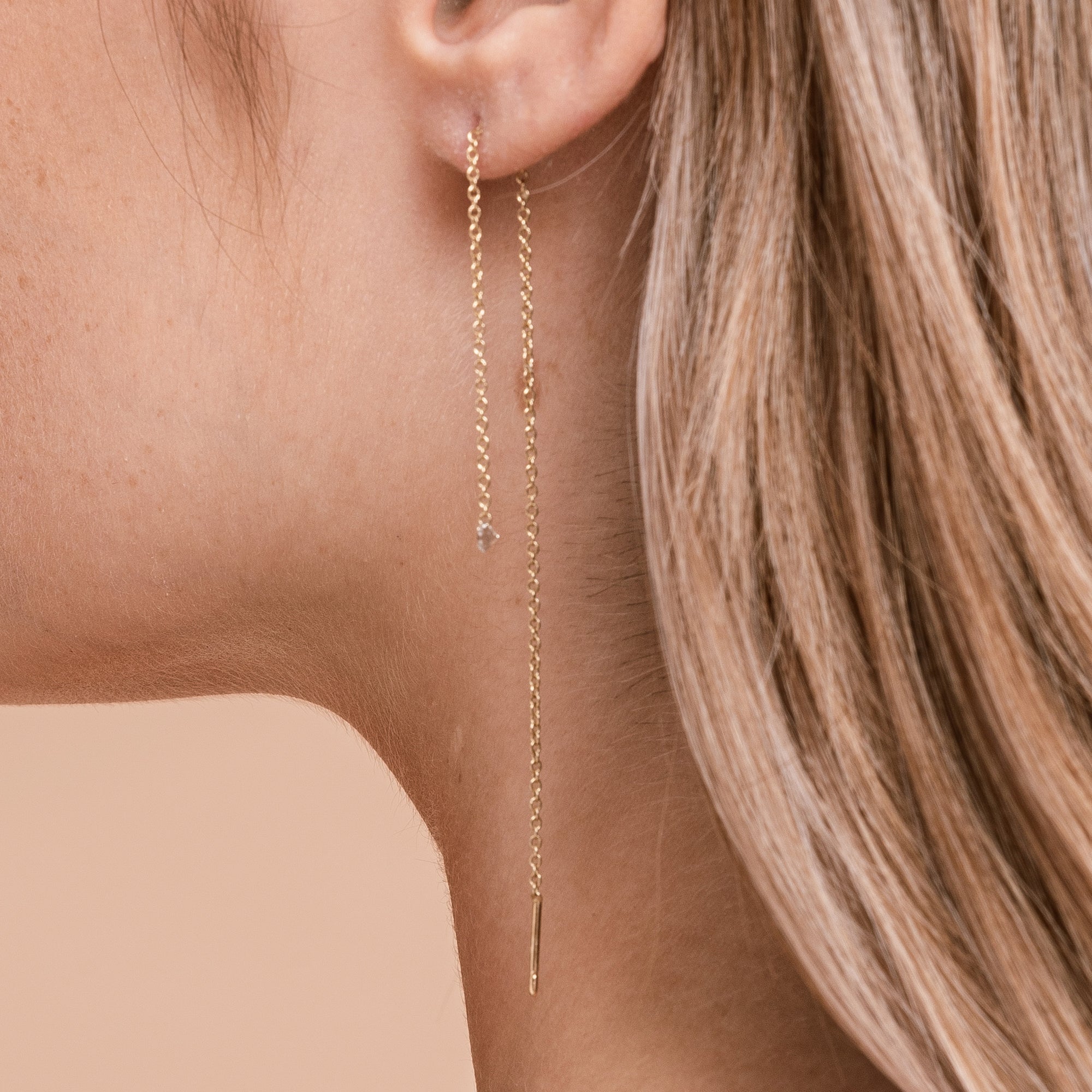 PAIO ORECCHINI SU CATENA IN ORO CON BRILLANTE FORATO DA 0,15 CT