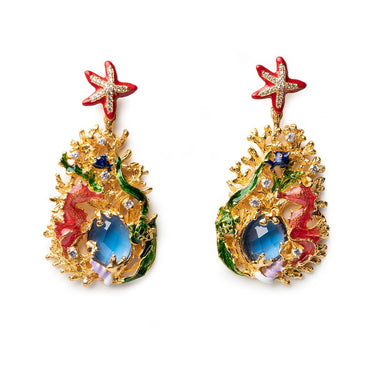 Tra i coralli, i pesci e le stelle marine emerge il blu profondo della Siamite® , avvolto in questo gioiello di rara fattura e preziosità.