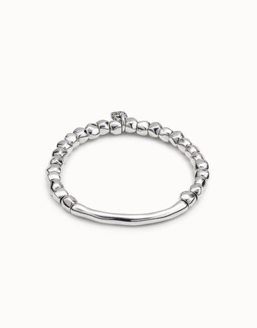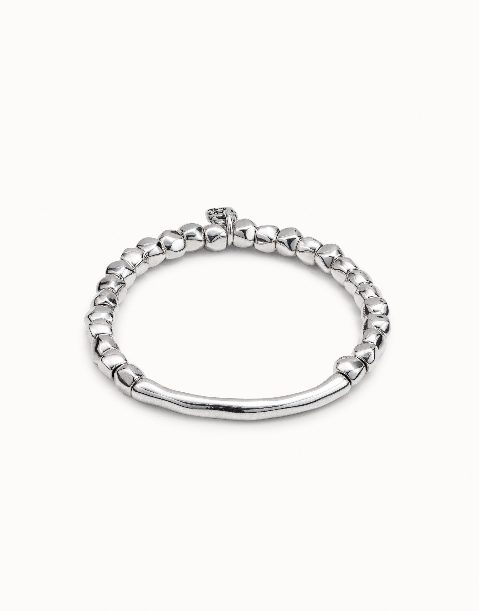 Bracciale placcato argento Sterling con perline ed elemento tubolare. È stato realizzato in modo artigianale al 100%, Made in Spain.