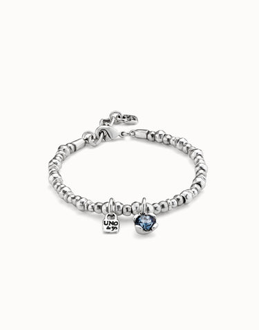Bracciale placcato argento Sterling formato da un assortimento di sfere e due charms: un cristallo sfaccettato blu e l’iconico lucchetto di UNOde50. È dotato di chiusura a moschettone e catenina regolabile che permette di regolarlo sulla misura desiderata. Gioielli Made in Spain, realizzati completamente a mano, per ottenere una finitura dal design unico. La collezione Charismatic, rappresenta la capacità di attrarre, affascinare e influenzare ciò che ci circonda, cosa che si può ottenere solo in modo naturale.