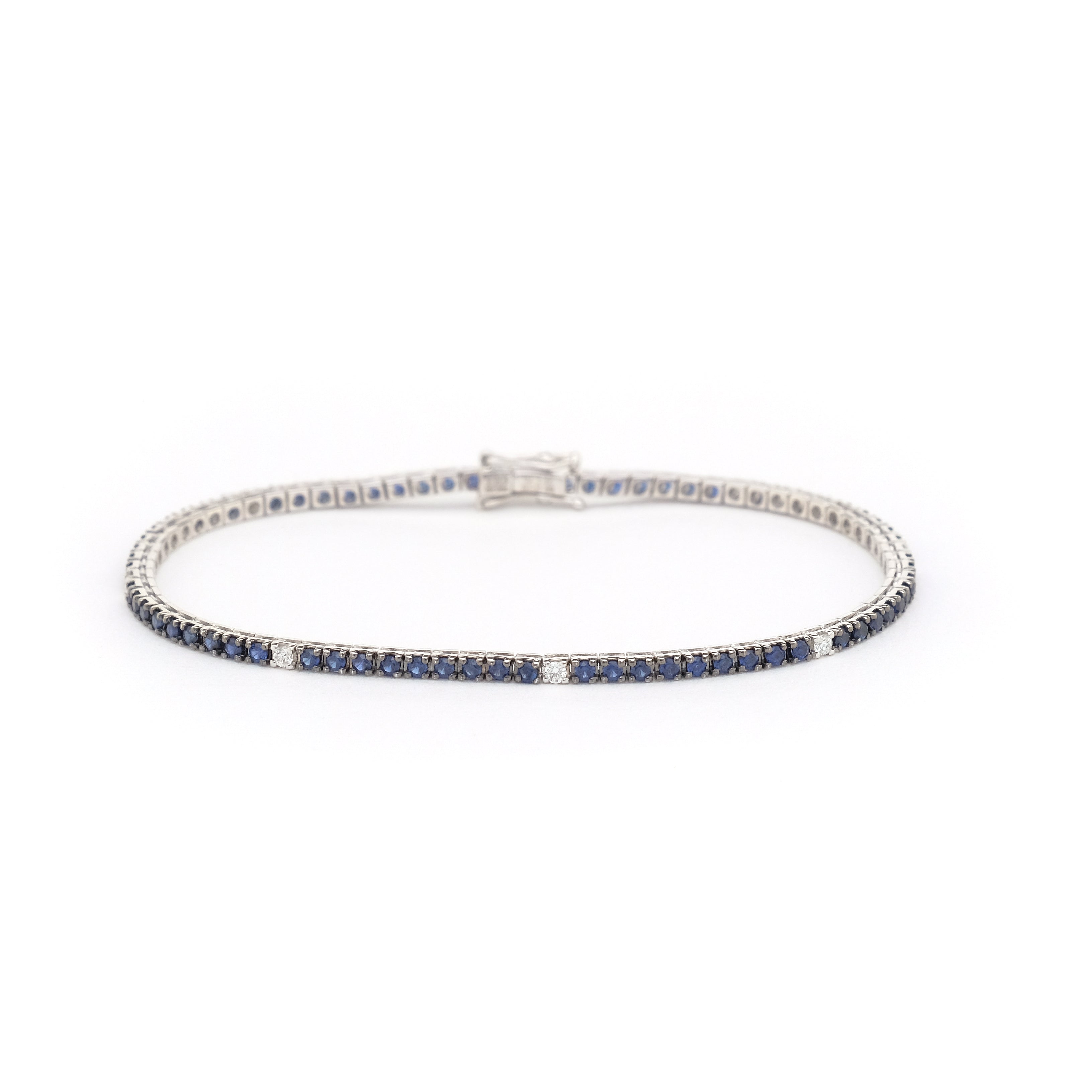 Bracciale Tennis in oro Bianco, Zaffiri e Diamanti