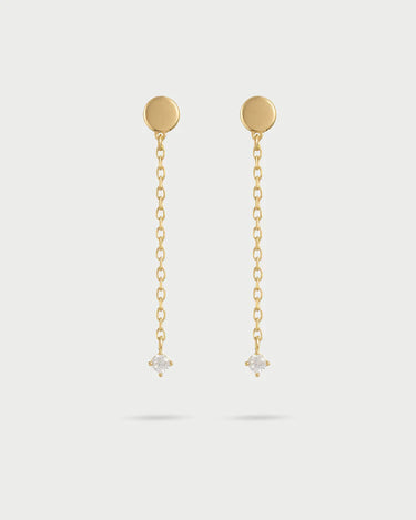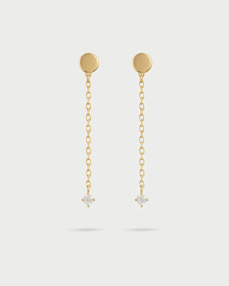 Orecchini a paio con disco catenella line e punto luce in zircone bianco
