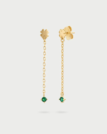 Orecchini a paio con quadrifoglio catenella line e punto luce in zircone verde